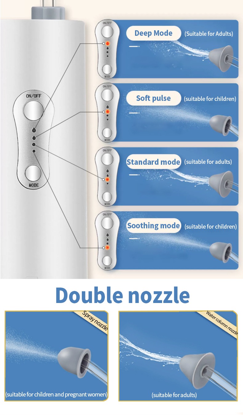 5 modos de trabalho para atender diferentes necessidades de lavagem nasal
