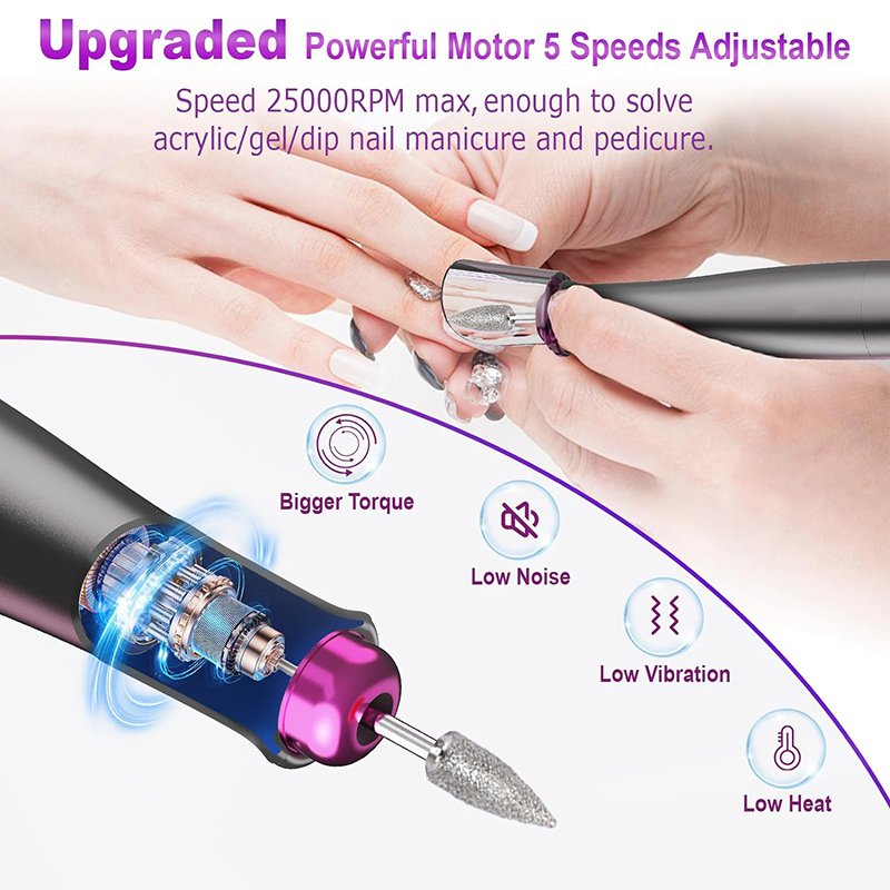 Máquina furadeira elétrica para unhas O motor potente atualizado é perfeito para todas as suas necessidades de manicure e pedicure, incluindo remoção de unhas de acrílico, unhas de poli gel, gel de besouros, unhas em pó, cutículas, pele morta, calosidades e unhas grossas.