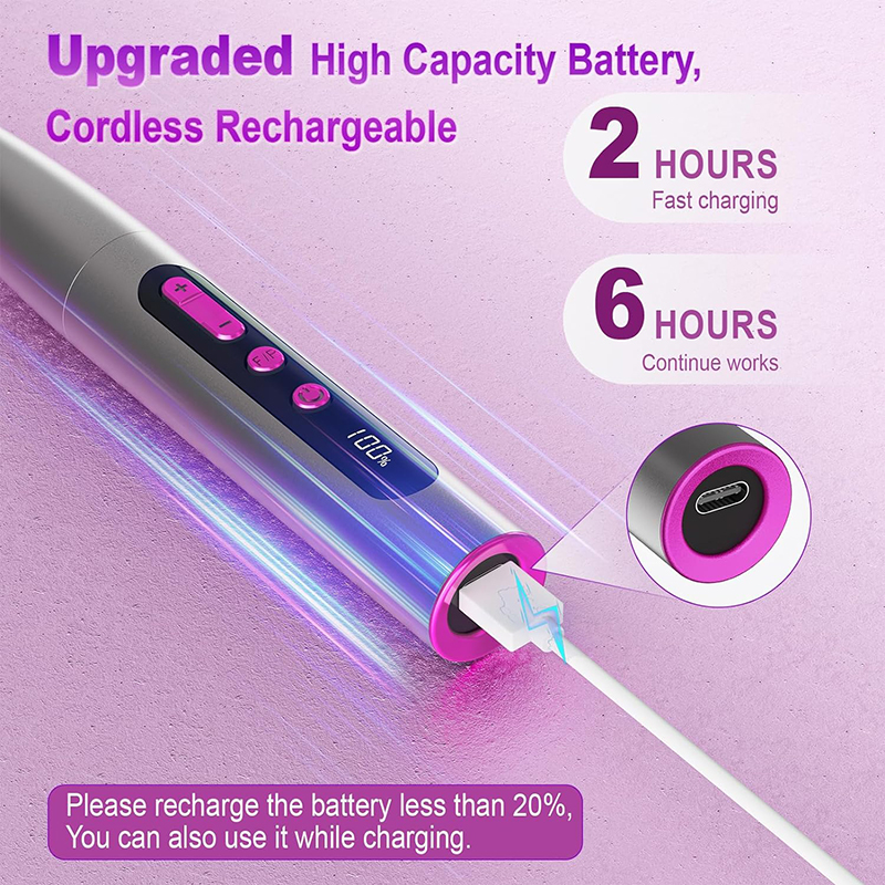 furadeira elétrica para unhas Bateria atualizada de alta capacidade, 2 horas de carregamento rápido e 6 horas de trabalho contínuo. A lima de unhas elétrica é adequada para seu adaptador de energia USB, laptop, energia móvel, etc. Se a potência da furadeira de unhas sem fio for inferior a 20%, você também pode usá-la durante o carregamento.