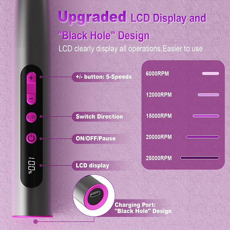 O design compacto da broca de unhas (168 x 20 mm) e leve (0,22 lb) com funções poderosas, escolhendo nosso conjunto de brocas de unhas como um presente para mulheres em qualquer feriado, como Natal, Ação de Graças, Aniversário, Dia das Mães, Dia dos Namorados com certeza será uma escolha calorosa.