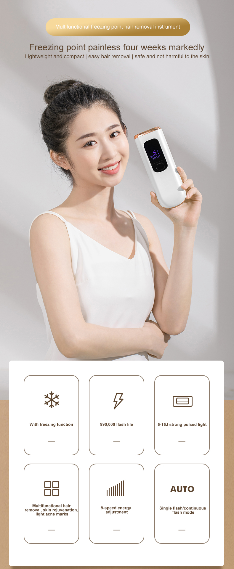 - Obtenha resultados suaves como a seda em casa. Ele adota tecnologia de toque de gelo de safira de nível clínico para reduzir a temperatura de 158 ℉ para 67 ℉ no ponto de contato com a pele.
