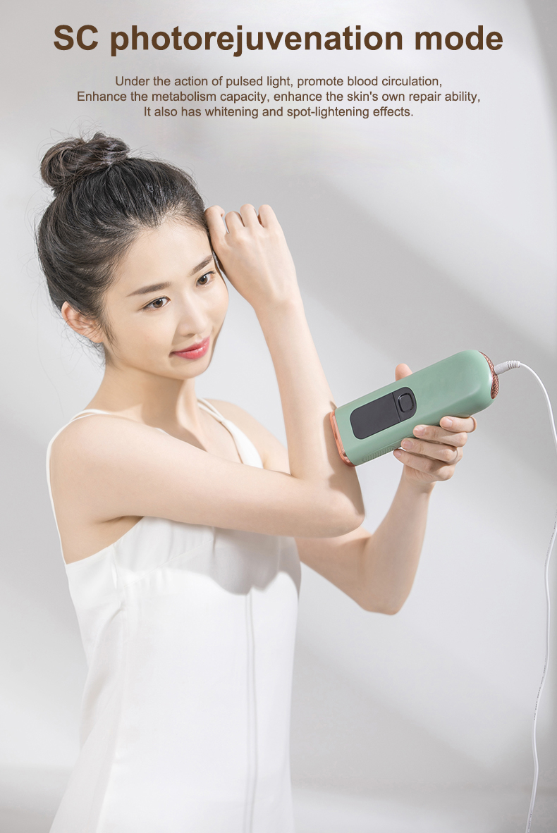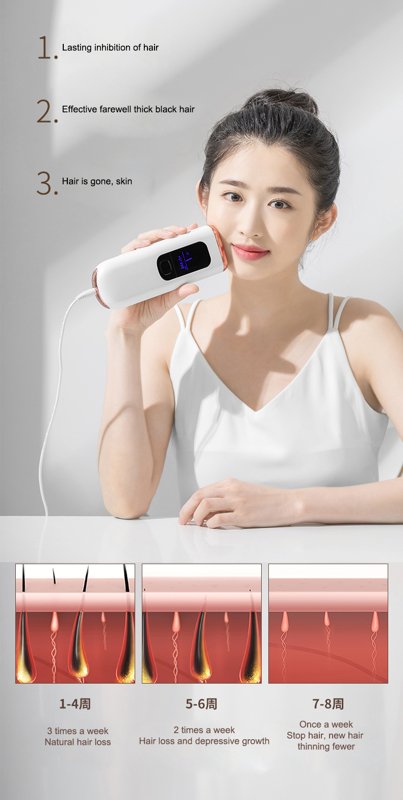 (Nota: 1, não é adequado para pele tatuada e bronzeada, áreas feridas e grávidas. 2, é um dispositivo plug-in, mantenha o dispositivo sempre conectado à energia durante o tratamento.)