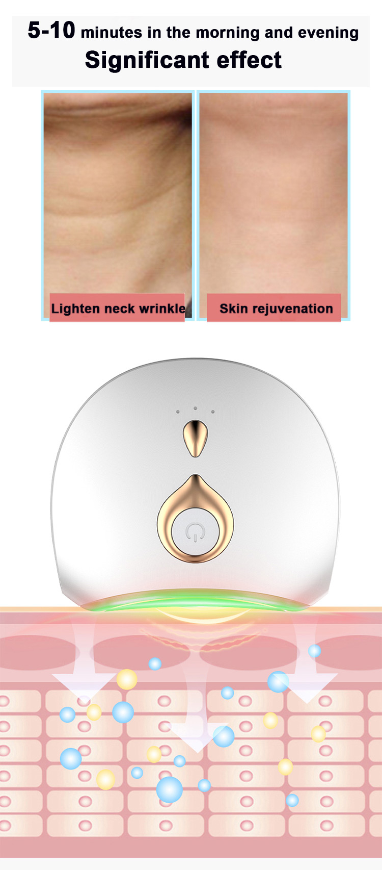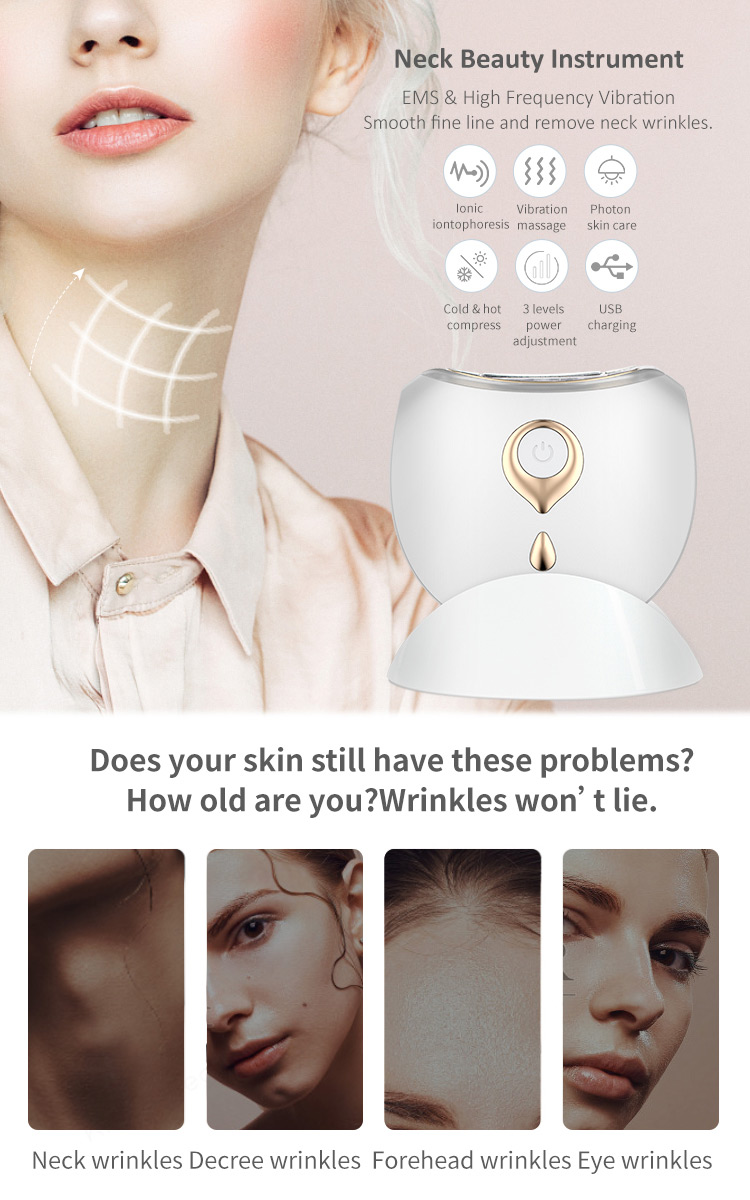 EMS e vibração de alta frequência, suaviza linhas finas e remove rugas no pescoço