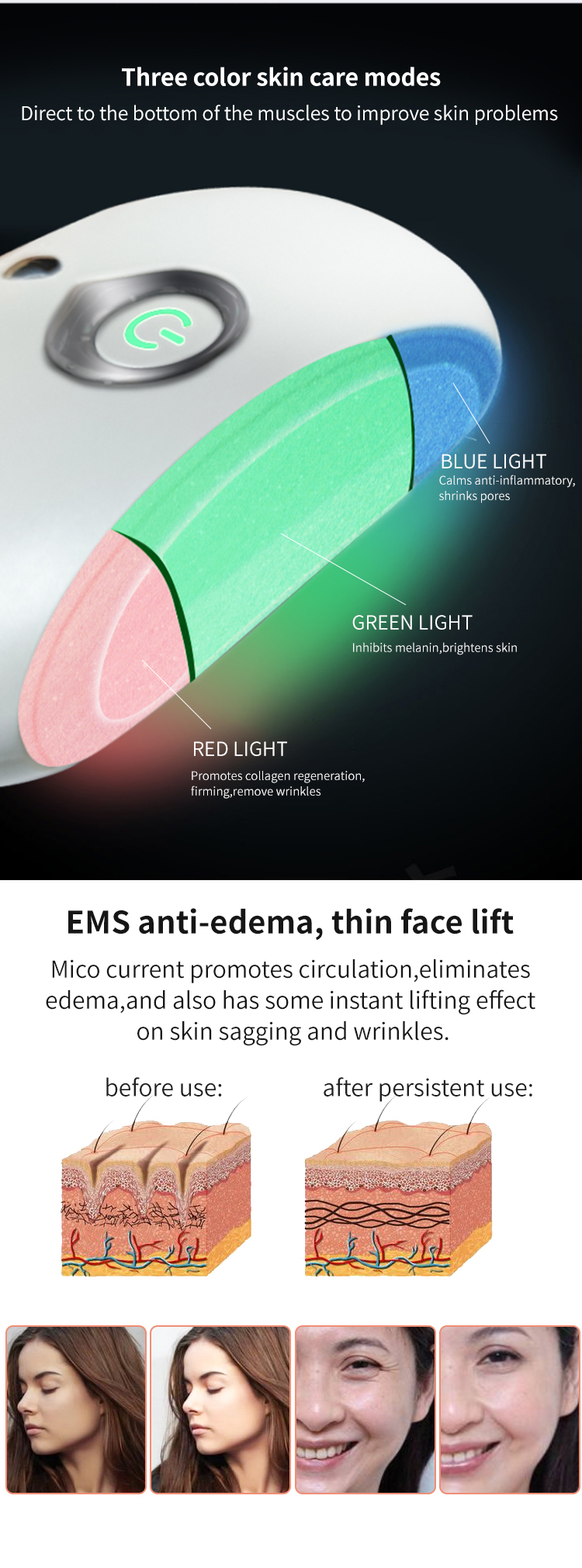 Modos de cuidados com a pele de três cores, direto para a parte inferior dos músculos para melhorar problemas de pele