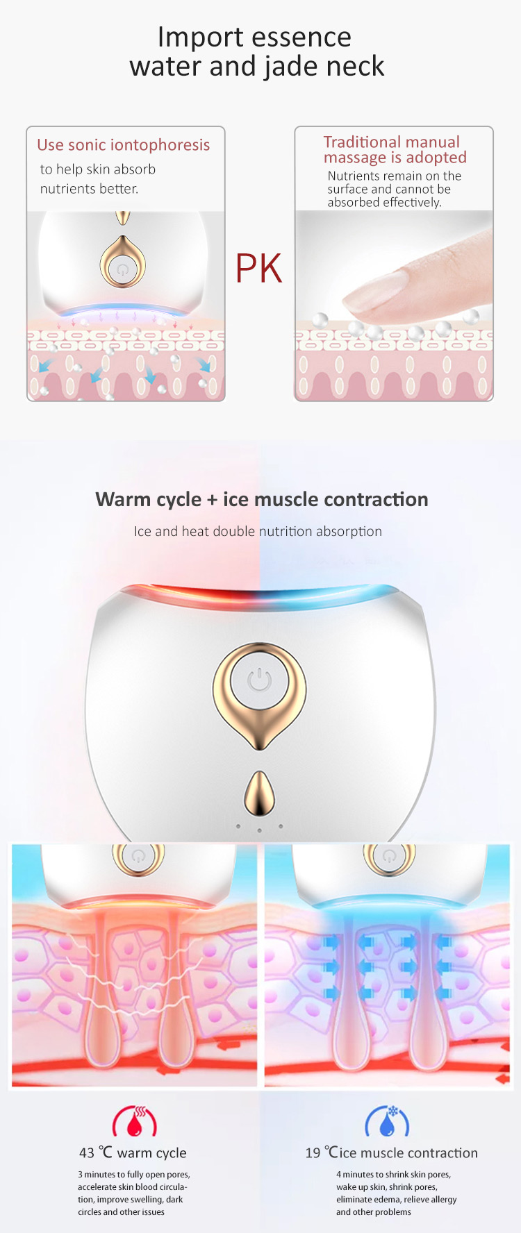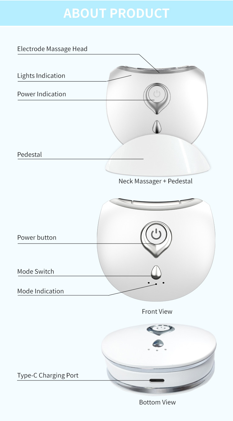 Aperte o queixo duplo, ajuste a pele, reduza linhas finas e rugas. Também foi projetado para pescoço e ombros.