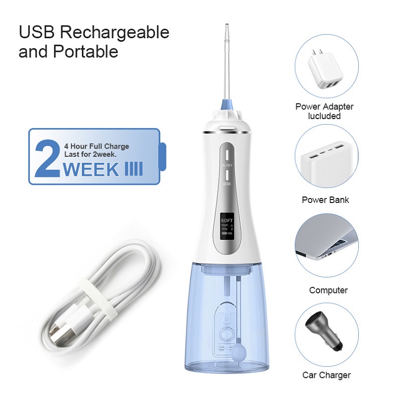 Este fio dental aquático possui o dobro da vida útil da bateria de outros com uma bateria poderosa e ecológica. Basta carregar por 3 horas e aproveitar 30 dias de uso. É compacto e leve, perfeito para uso doméstico e em trânsito. Esta palheta odontológica aquática vem com um cabo USB (adaptador não incluído), tornando-a um kit de viagem ideal. Beneficie-se de uma bateria com duração excepcionalmente longa de 30 dias, tornando-a uma solução verdadeiramente portátil para sua conveniência