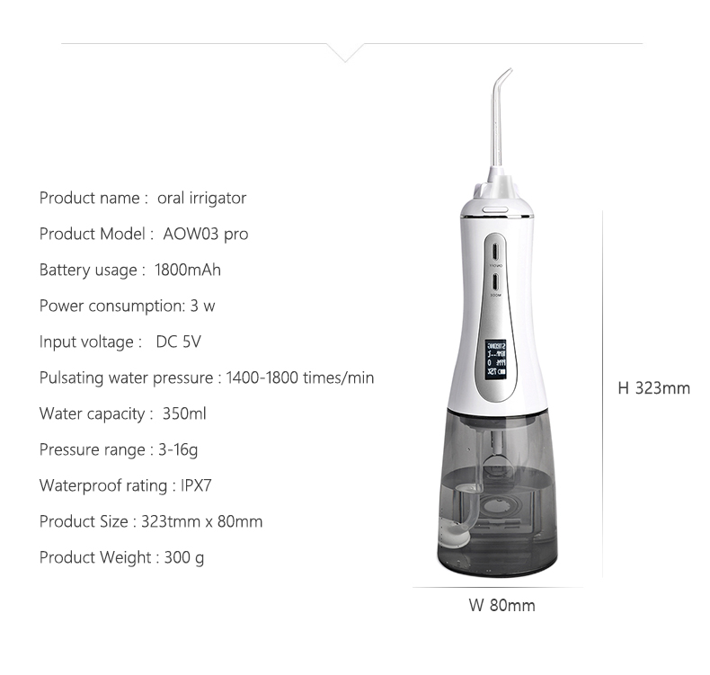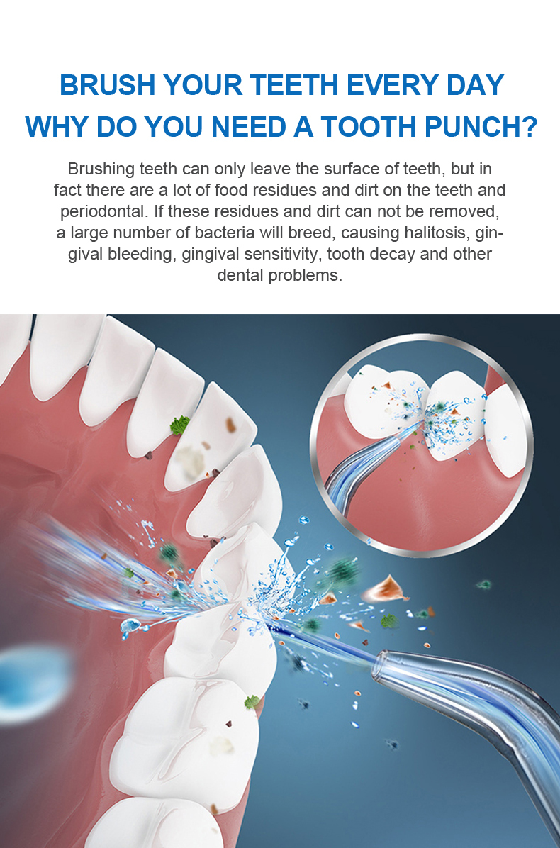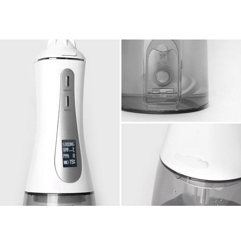 Esta palheta dentária de água fornece pulsos de alta pressão de água de 1400 a 1800 vezes por minuto, removendo efetivamente 99,9% da placa dentária para limpeza profunda dos dentes. Este palito dental aquático massageia as gengivas, promove a circulação sanguínea e trata de problemas bucais como mau hálito e dentes ortodônticos