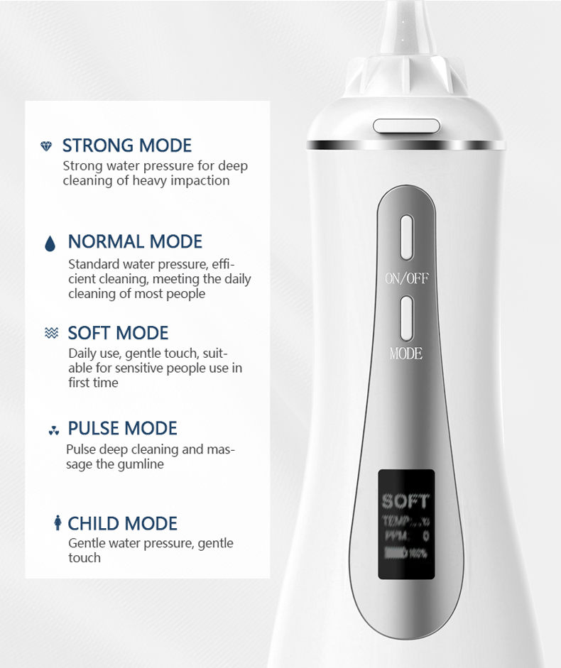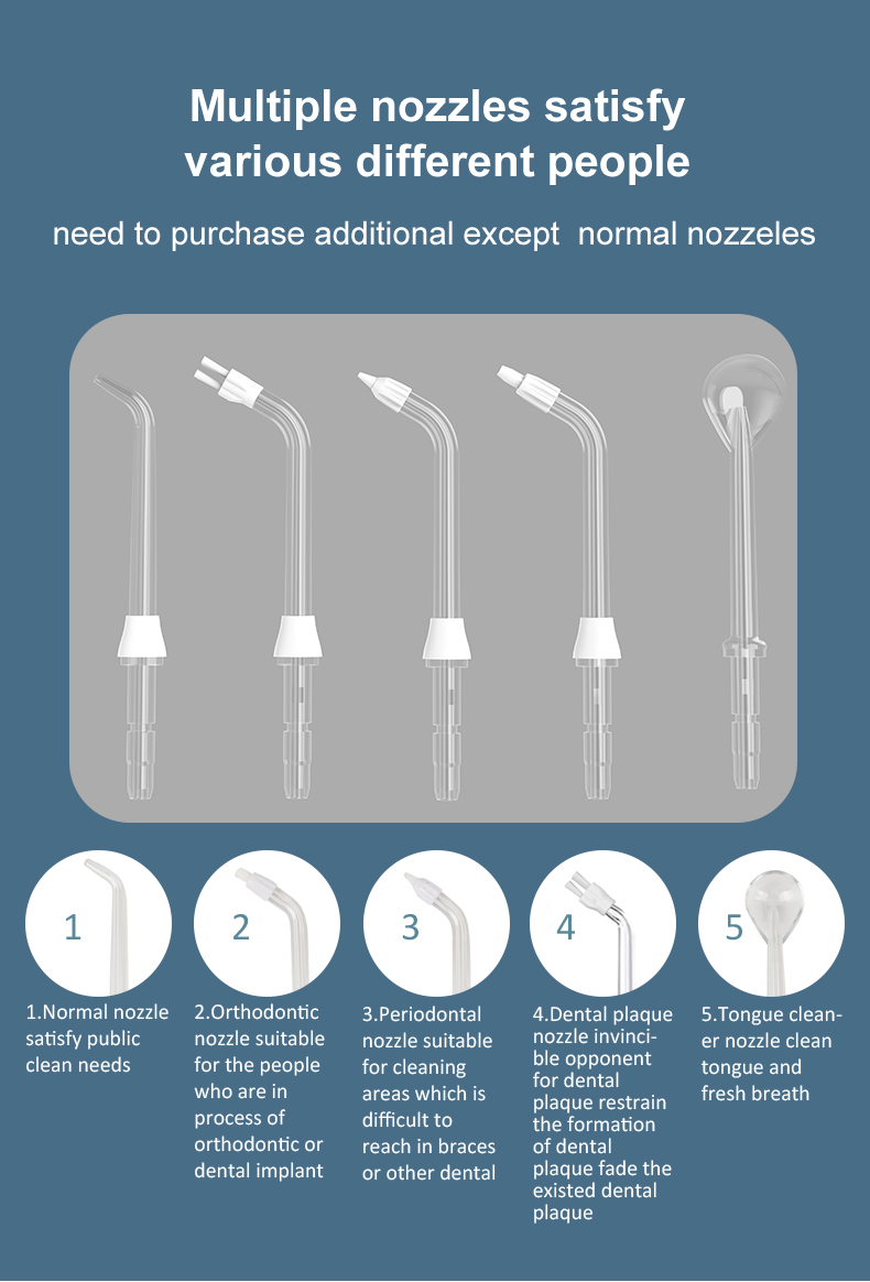 Avaliado profissionalmente por uma equipe odontológica americana, nosso fio dental oferece cinco modos convenientes para atender às diferentes necessidades de 99% de faixas etárias diferentes, garantindo ao mesmo tempo desempenho e vida útil ideais. Sua alça ergonômica e 6 bicos intercambiáveis garantem uma experiência confortável e versátil. É um presente atencioso para aniversários, Natal, Ação de Graças, Dia dos Namorados, Dia das Mães dos Pais ou para cuidar da saúde bucal de seus entes queridos.