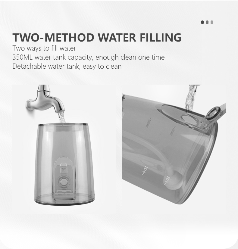 Este fio dental com água possui um tanque de água atualizado de 350ml, o dobro da capacidade de outros modelos antigos, eliminando a necessidade de recargas frequentes e tornando sua limpeza bucal mais conveniente e eficiente