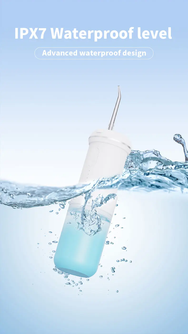 IPX7 Waterproof & 2 Years Durablility: This cordless water dental flosser is built to last with IPX7 waterproofing, allowing for easy cleaning and safe use in the shower. The upgraded motor provides more effective cleaning and increased durability, lasting up to 2 years - 30 Days Extended Battery Life for On-the-Go Use: The portable water dental flosser features a powerful eco-friendly battery that lasts double the time of other models. With just 3 hours of charging, you can enjoy up to 30 days of use. Its compact and lightweight design makes it perfect for use at home or on-the-go, and it comes with a USB cable (adapter not included) for easy charging.Note:Only 5V/1A/2A/3A adapter is suitable, Please use the correct adapter for charging